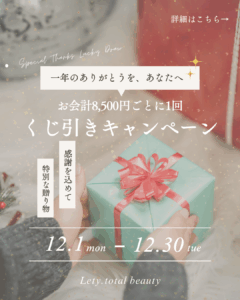 一年の感謝を込めて、12月限定の「くじ引きキャンペーン」を開催いたします🎁✨